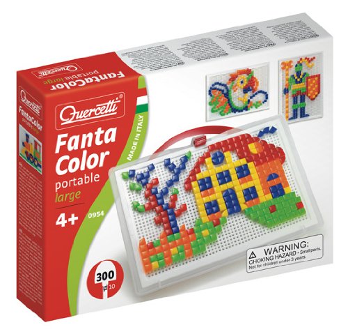 Quercetti 0954 - Fanta Color, Mosaico grande con chiodini da infilare, compresi 300 chiodini quadrati e triangolari